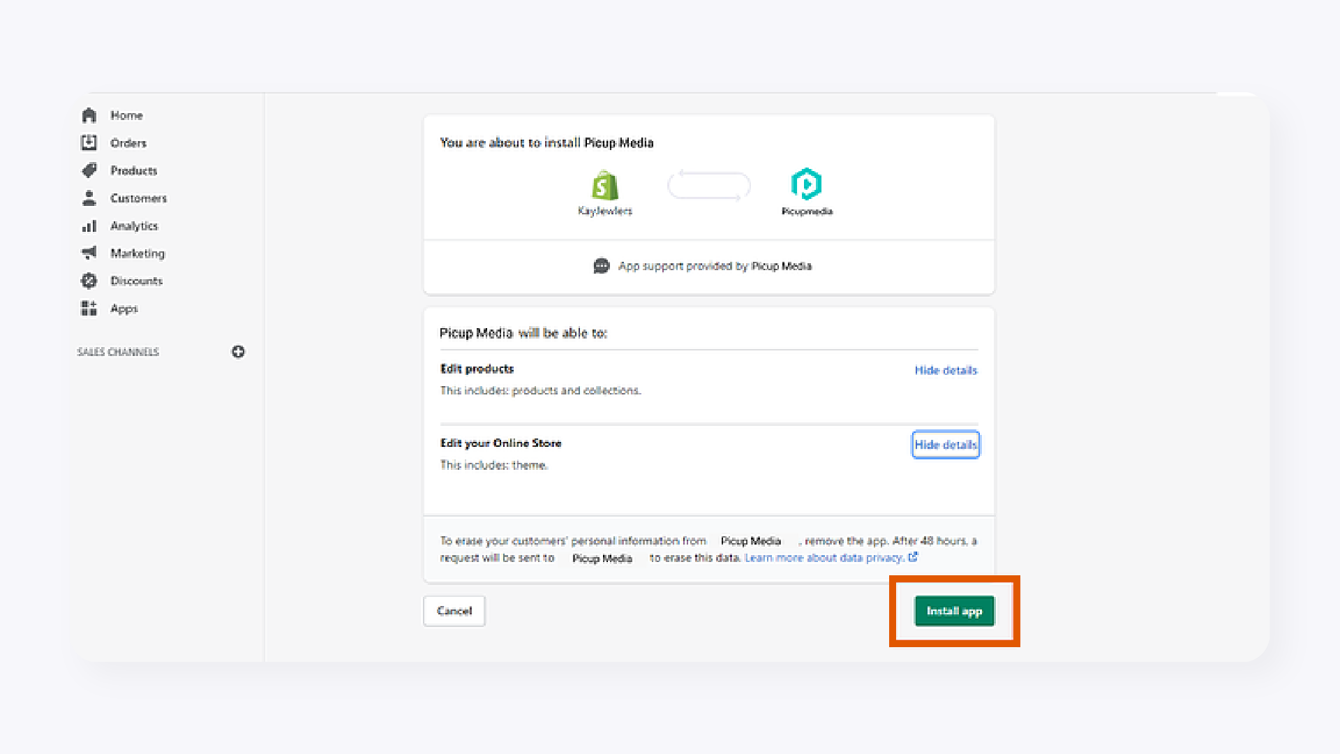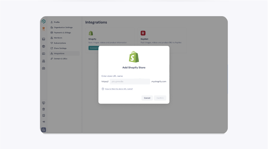 Once you've entered the URL, you'll be directed to your Shopify store. Add the GemHub Shopify application, authenticate your Shopify store, and install the app within your Shopify dashboard. After setting up the Shopify app and GemHub dashboard, you will be ready to start syncing.