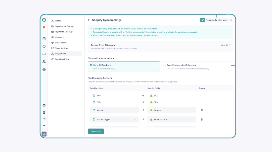 You can now choose to sync either all products or selectively by collections from GemHub to Shopify. Syncing All Products