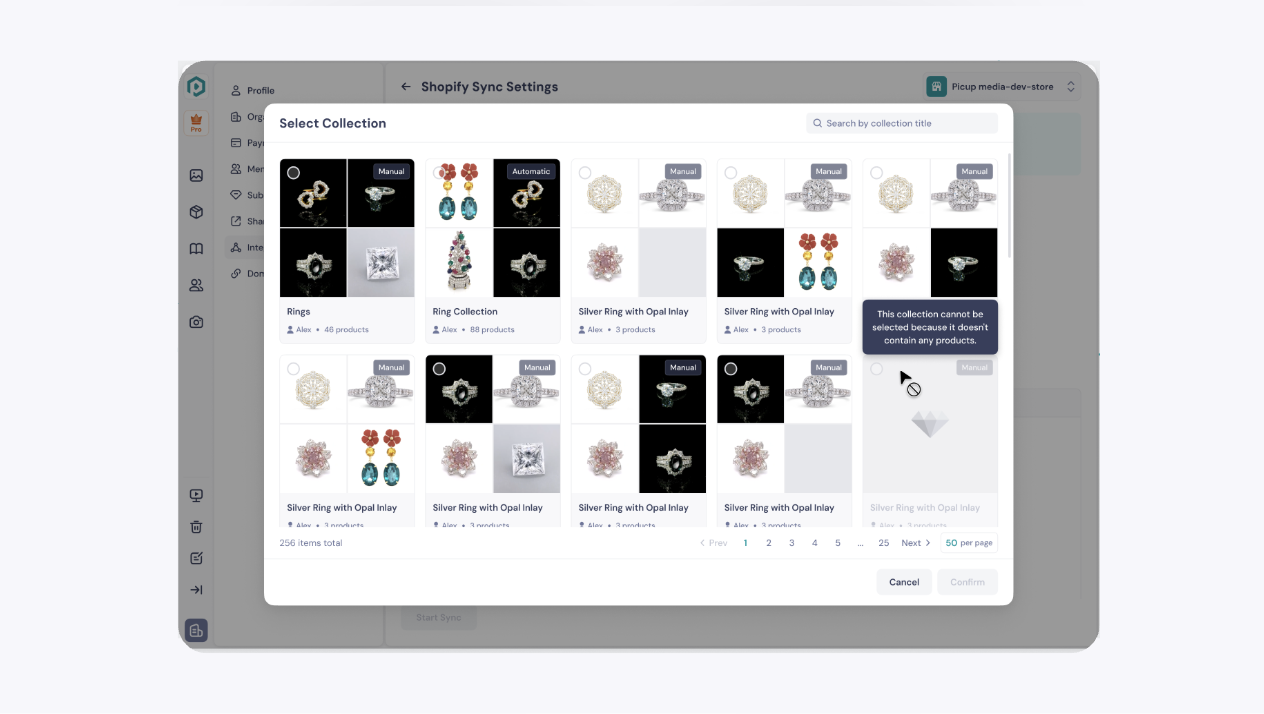 There will be a pop up window that allows you to choose the collection that you will like to sync. Note: Only collections with products can be selected.